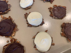 Each Turtle contains three layers of yummy goodness: a layer of pecans, creamy homemade caramel, and premium white, dark, or milk chocolate.